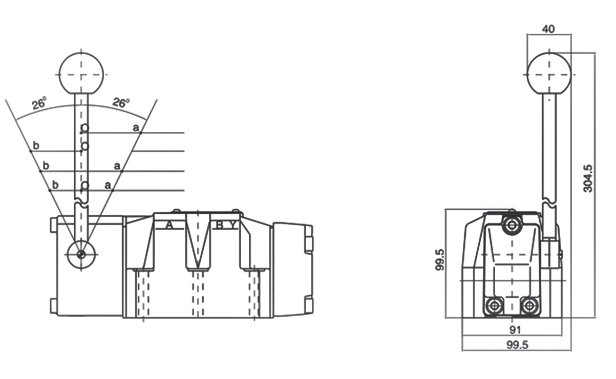 Присоединительные размеры гидрораспределителя ВММ10 с ручным управлением