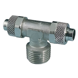 3070838 - Фитинг - тройник с накидными гайками наруж. резьба R3/8" под трубку 8/6 мм, тип "T"