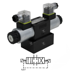 Гидрораспределители 44ПГ73-11М.Г24 - это золотниковые четырехлинейные распределители с электромагнитным управлением, условным проходом 8 мм и номинальным напряжением 24В постоянного тока. Данные распределители управляют направлением, пуском и остановкой потоков жидкости в соответствии с 44 схемой распределения по ГОСТ 24679-81.