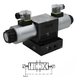 Гидрораспределители 44ПГ73-12М.Г24 - это золотниковые четырехлинейные распределители с электромагнитным управлением, условным проходом 10 мм и номинальным напряжением 24В постоянного тока. Данные распределители управляют направлением, пуском и остановкой потоков жидкости в соответствии с 44 схемой распределения по ГОСТ 24679-81.