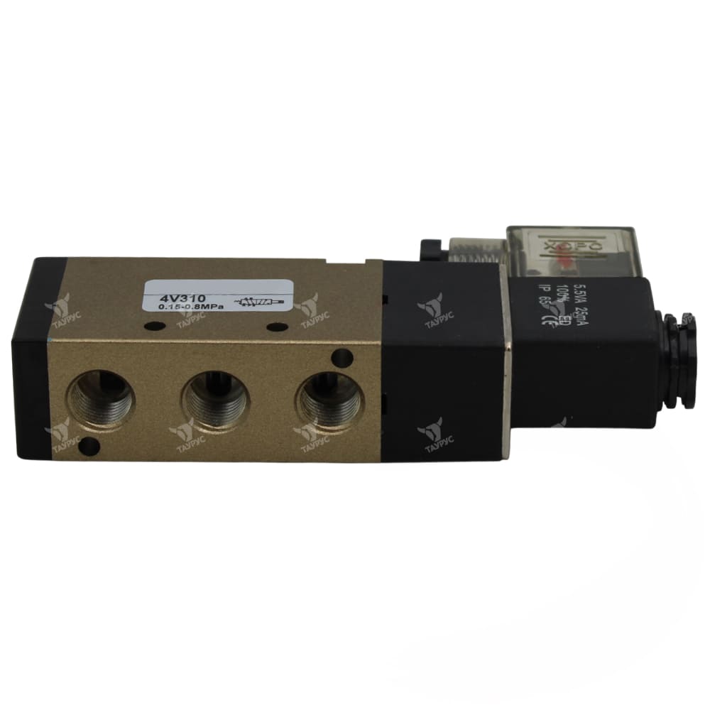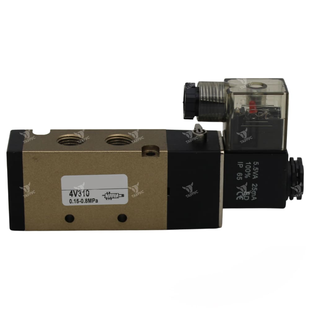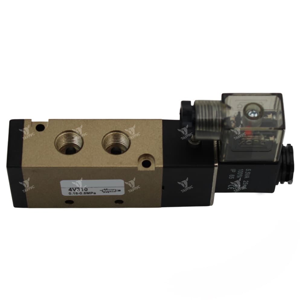 Пневмораспределители 4V310-08 AC220V являются 5-линейными двухпозиционными (5/2) пневматическими распределителями с односторонним электропневматическим управлением, номинальным напряжением 220В переменного тока, присоединением 1/4" и пружинным возвратом золотника в исходное положение. Данные клапаны применяются в различного рода пневматическим приводах и служат для управления направлением потоков рабочей среды пневмосистемы (сжатый воздух), её пуском и остановом.Управление потоками воздуха осуществляется за счёт перемещения в корпусе пневмораспределителя золотника, форма которого зависит от габарита и схемы распределения. Золотник, в зависимости от своего положения в корпусе, перекрывает или открывает доступ сжатого воздуха по внутренним каналам пневмораспределителя в ту или иную линию.