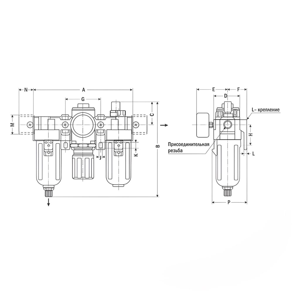 БК-М-16 - Блок кондиционирования с манометром серо-золотистый, G1/2"