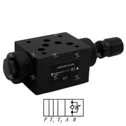 Гидродроссель с обратным клапаном ДКМ-10/3В с условным проходом Ду=10, номинальным давлением на входе 32 МПа обычно входит в комплекс модульной гидроаппаратуры и предназначен для создания перепада давлений между подводимым и отводимым потоками рабочей жидкости или регулирования величины расхода при прохождении потока рабочей жидкости в одном направлении и пропускании потока при прохождении его в обратном направлении в гидросистемах станков, прессов и других машин. В исполнении ДКМ 10/3 МВ дроссель установлен в линии В.