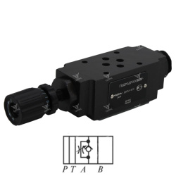 Гидродроссель с обратным клапаном ДКМ-6/3А с условным проходом Ду=6, номинальным давлением на входе 32 МПа обычно входит в комплекс модульной гидроаппаратуры и предназначен для создания перепада давлений между подводимым и отводимым потоками рабочей жидкости или регулирования величины расхода при прохождении потока рабочей жидкости в одном направлении и пропускании потока при прохождении его в обратном направлении в гидросистемах станков, прессов и других машин. В исполнении ДКМ-6/3А дроссель установлен в линии А.