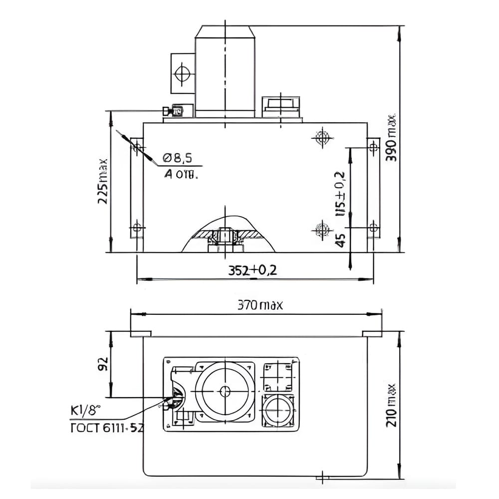Габаритные и присоединительные размеры станций смазочных И-СЭ 10/1,0