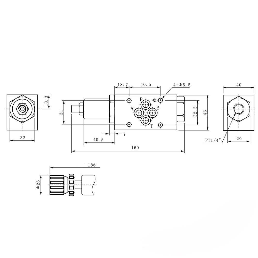 MPRV-02-B-K-3 - Гидроклапан редукционный, CETOP-03, P=70-250 бар, Q=35 л/мин, контроль B сброс в Т