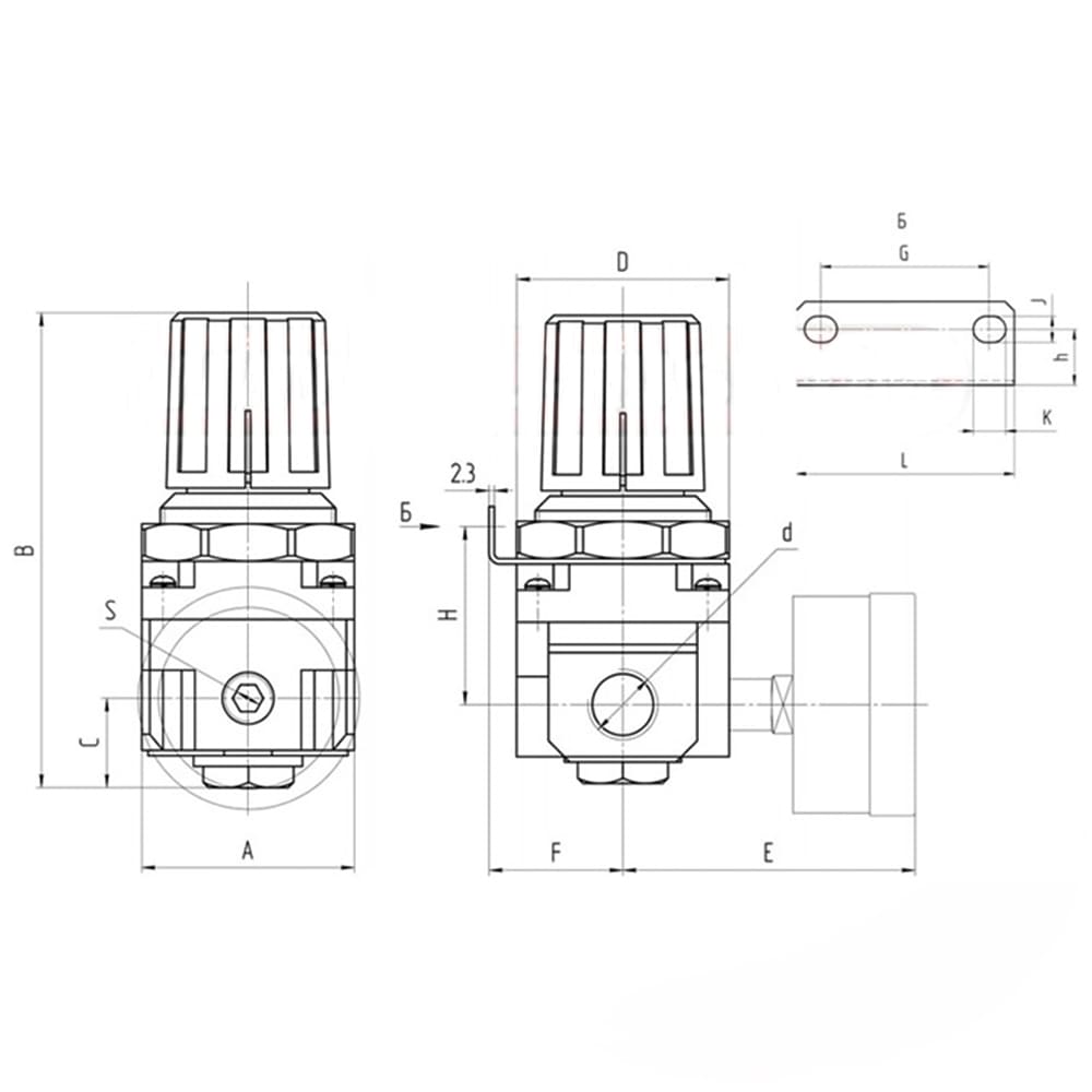 П-РК-10 - Пневмоклапан редукционный с манометром серо-золотистый, G3/8"