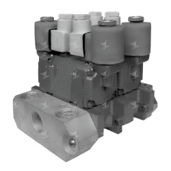 ПБУ 7-10.211 - Пневмоблок управления, два распределителя, номинальное давление 1 Мпа, присоединение К 3/8", Ду 10мм, 12В постоянного тока
