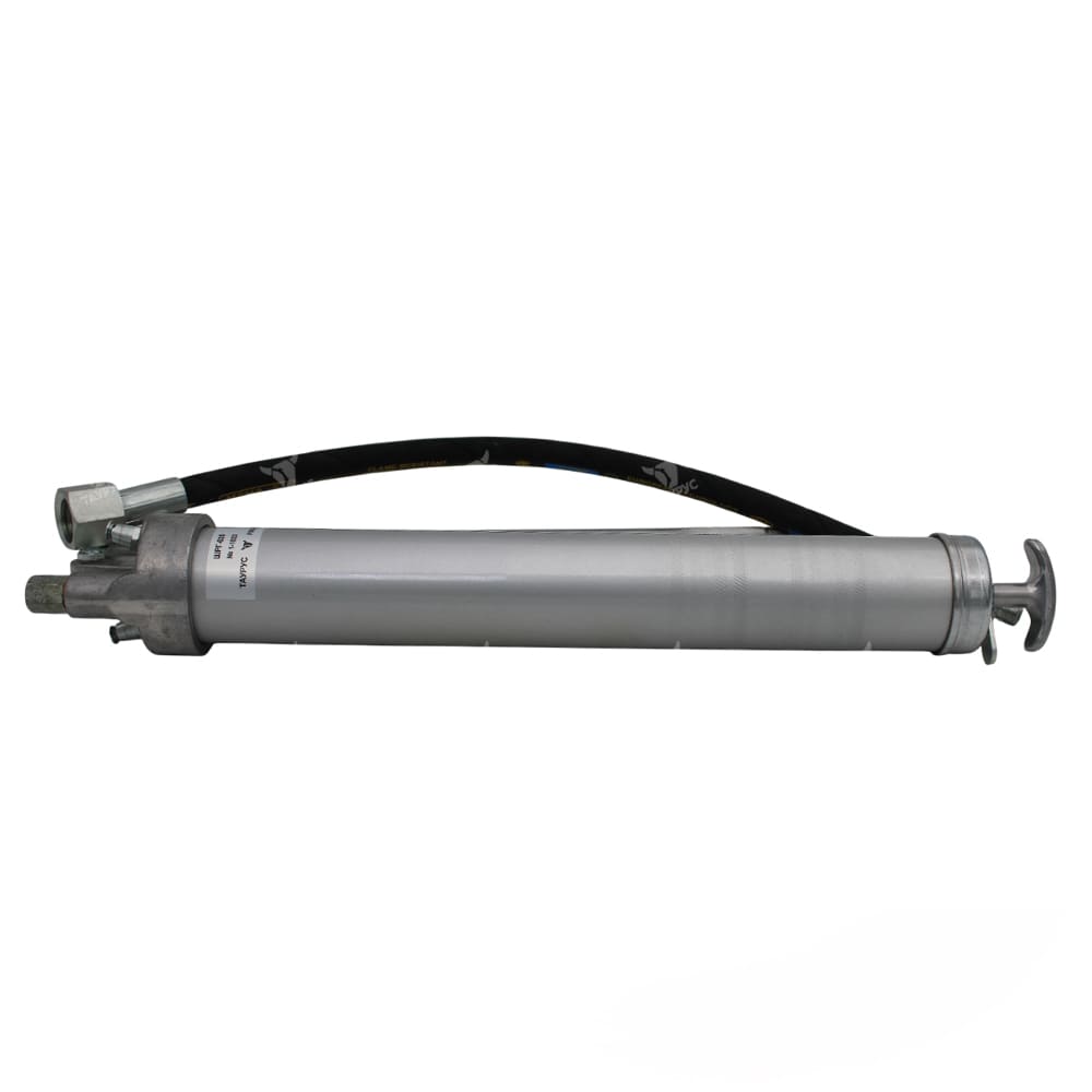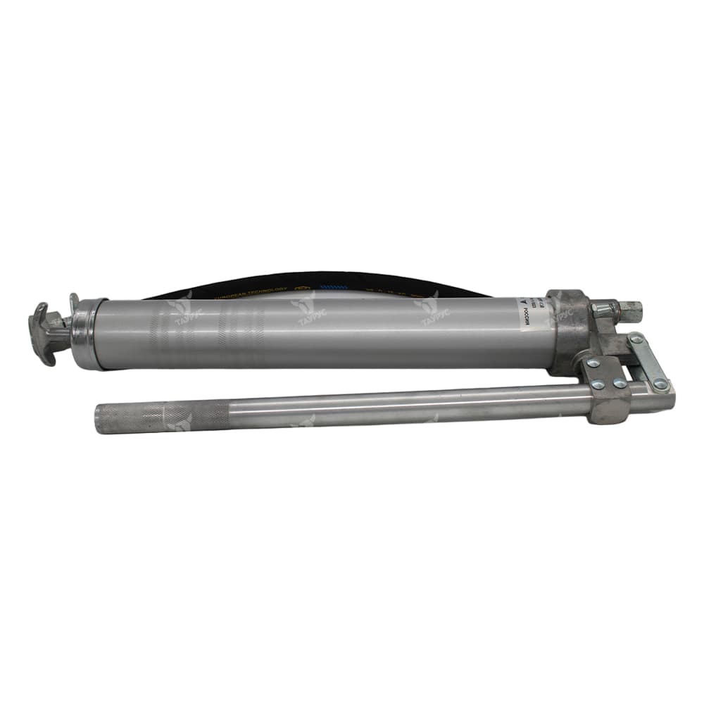 При возврате рычага 9 в исходное положение, плунжер 3 перемещается в противоположную сторону, вытесняя смазку, через обратный шариковый клапан 2 в шланг 1 с наконечником 5 (для монтажа на масленку или тавотницу), к смазываемой точке.