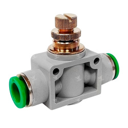 T311000 - Дроссель пневматический с обратным клапаном и встроенными цанговыми фитингами под трубку 10 мм
