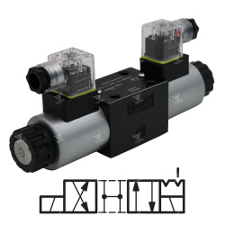 Гидрораспределитель ВЕ6.574.ОФ.В110 с номинальным напряжением 110В переменного тока и 2 электромагнитами представляет собой золотниковое устройство, предназначенное для управления направлением потока по 574.ОФ схеме распределения рабочей жидкости (масла) в гидравлических системах,по маркировке гидрораспределителей серии ВЕ. (См. схемы распределения рабочей жидкости) Это классический тип распределителя зарекомендовал себя как надежное и универсальное решение, активно применяемое в различных отраслях.Структура условного обозначения ВЕ6.574.ОФ.В110