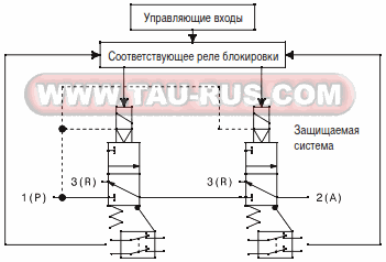 Описание сдвоенных пневматических распределителей VG342-X87Сдвоенные трехлинейные пневмораспрделители VG342-X87 имеют пружинный возврат и электропневматическое управление, зачастую применяются в системах безопасности и пневмоприводах прессового оборудования. Когда в катушке пневмораспределителя спадает напряжение, давление сбрасывается в атмосферу для обеспечения безопасности. Рабочей средой является очищенный (5 мкм) сжатый воздух с содержанием масла или без него. Смазка не требуется, но если в пневмосистеме используется распыление масла, то рекомендуется применять турбинное масло Класса 1 ( без присадок) ISO VG32. Пневматические распределители работают при давлении от 0.25 до 0.7 МПа (от 2,5 бар до 7 бар) и температуре от -10 до +50 °C. Время срабатывания при включении 210 мс при давлении 0,63 МПа (объем 3 дм³), на выключение - 325 ( 3 дм³), 850 (10 дм³), 1600 (20 дм³), 2350 (30 дм³), 3100 (40 дм³). Для корректной работы распределителя, необходимо хотя бы одно срабатывание в неделю, срабатываний в минуту не более 30.