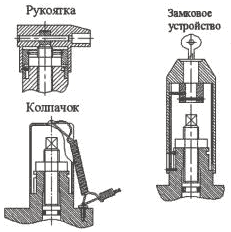 ![]() Регулировочные винты исполнений гидроуправляемых клапанов с ограничением хода запорного элемента могут иметь головку под ключ либо рукоятку. Регулировочные винты с головкой под ключ могут закрываться колпачком. Колпачок может иметь встроенное замковое устройство. |